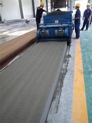ZB600預應力樓板機(空心板成型機)設備在事先做好混凝土平臺上生產作業。預先張拉好高強度、低松弛鋼絞線,運用擠壓推進的工作原理來制造混凝土空心板,所生產出來的板材具表面光滑,密實度高、跨度大等優點。